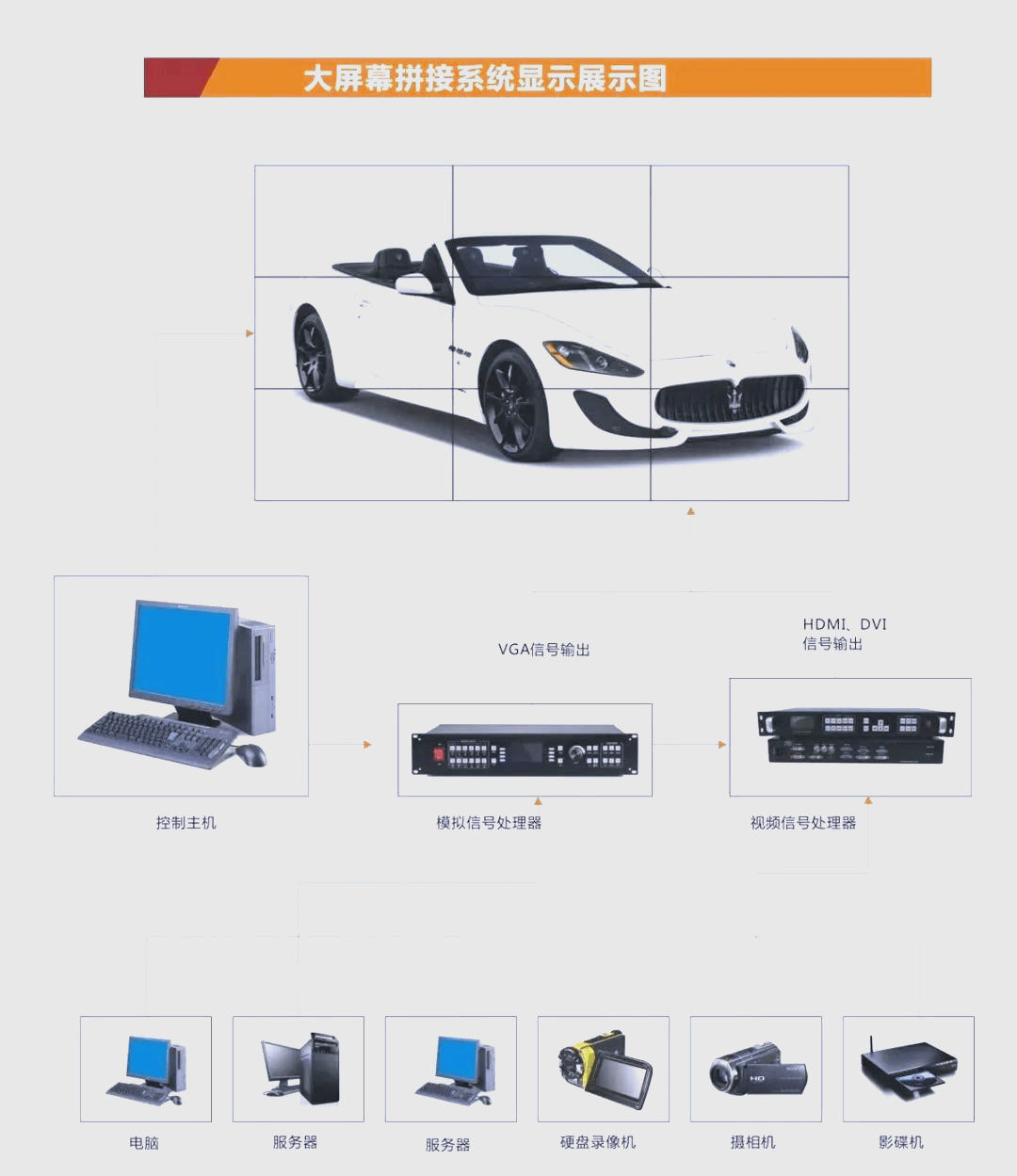 OBOO鸥柏液晶拼接屏的组成部件包括:液晶拼接屏本身、拼接处理器、图形拼接视频矩阵、大屏幕通信中继器、大屏幕电源集配器、连接系统软件包、拼接系统操作主机、专用支架以及拼接电缆等。
