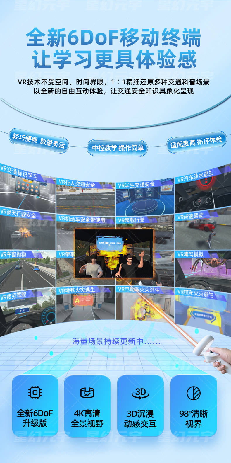交通安全关乎每一个人的生命与出行质量。随着社会交通工具的不断增加,交通事故也呈现多样化和复杂化趋势。如何让公众,特别是青少年群体,更直观地理解交通安全的重要性,一直是交通安全教育中的难点。近年来,随着虚拟现实技术的发展,VR交通安全学习机成为了交通安全宣传与教育的新亮点。它以沉浸式、互动化的体验方式,让交通安全知识不再枯燥难懂,而是通过“身临其境”的模拟教学,帮助人们在真实感受中掌握出行安全技能。