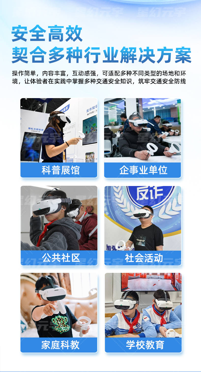学校可利用VR交通安全学习机,为学生提供更生动的交通安全课堂,让他们在虚拟道路中掌握正确的出行方式。