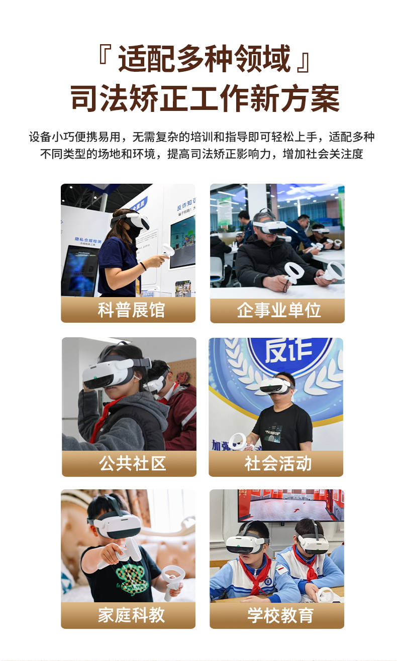 VR司法矫正宣教机适用于司法行政系统、监狱、社区矫正中心、法治教育基地、政法系统单位及高校法学教育。