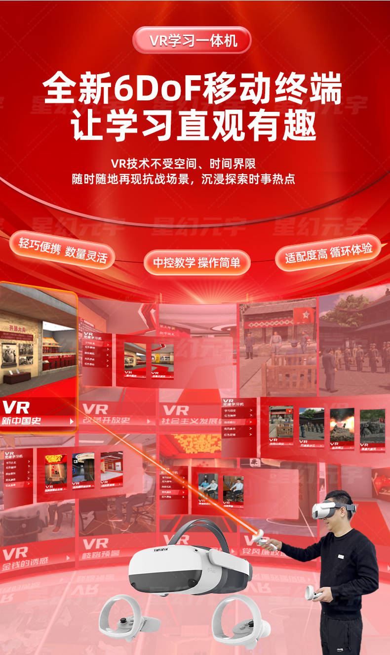 VR党建学习机正是这一趋势的产物。它通过立体影像、互动体验、语音讲解等技术,将抽象的党史知识、理论政策转化为可感知、可互动的学习场景,让党员“身临其境”地重温红色历史、学习先进典型、体验党性考验。