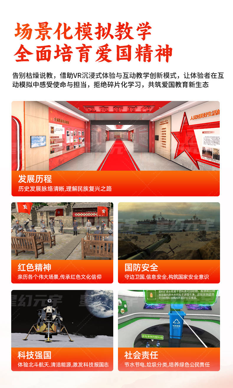青少年是祖国的未来,而爱国主义教育是思想政治教育的重要组成部分。VR爱国教育学习机通过创新形式,让年轻人从“要我学”转变为“我想学”。