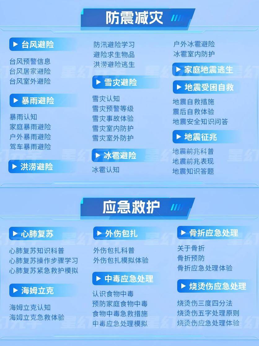 防溺水与防触电模块:针对青少年群体设置真实案例,让他们在虚拟环境中了解危险源和自救方法。