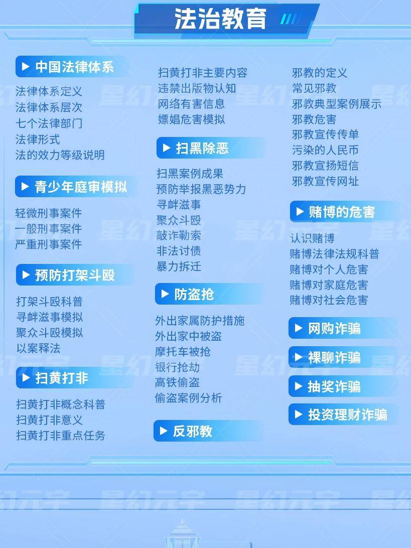 防诈骗教育模块:还原电信诈骗、网络诈骗、冒充公检法等情景,让居民通过互动选择学习识别诈骗的技巧。