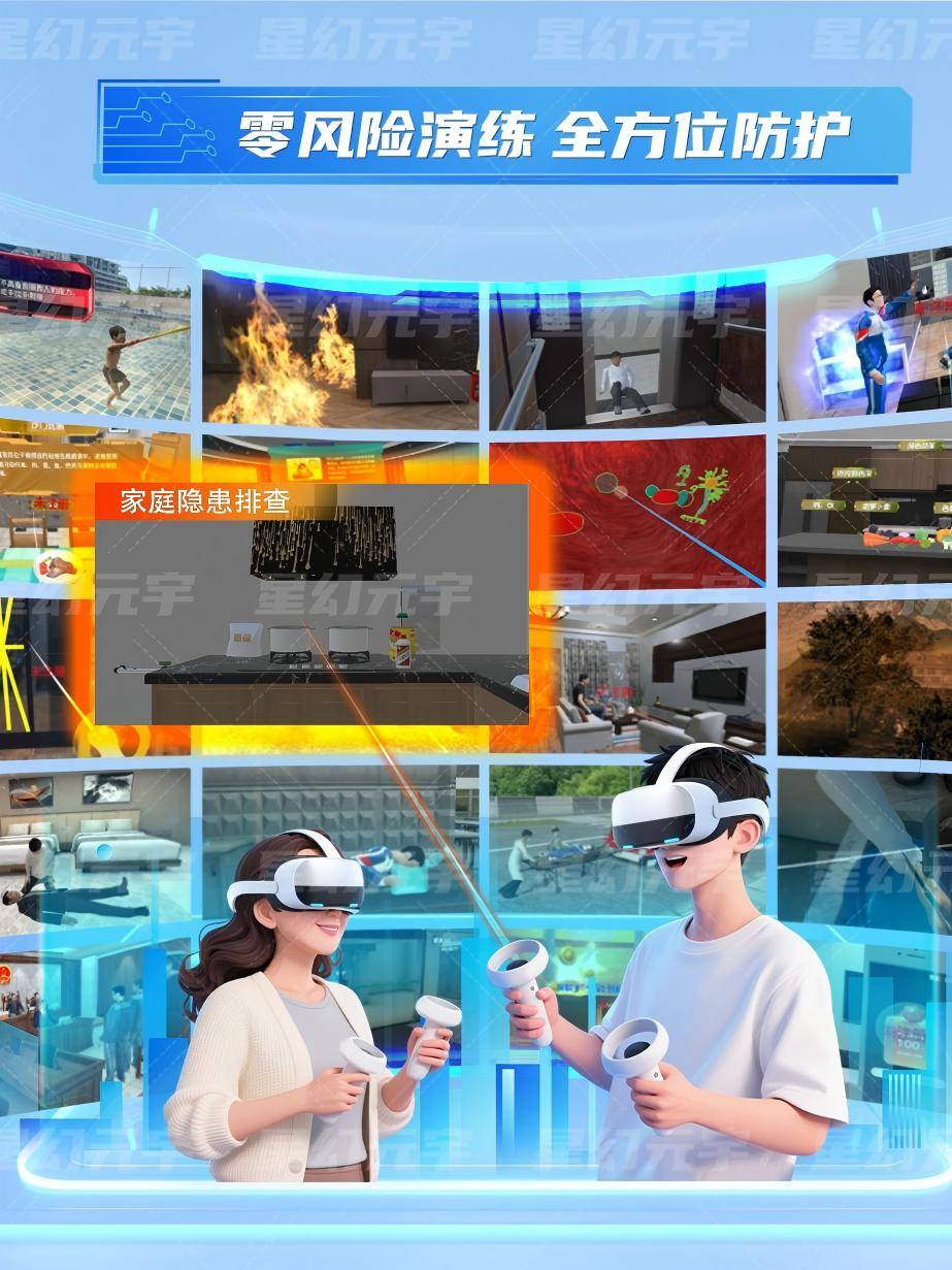 VR技术通过模拟真实场景,将用户带入沉浸式的虚拟空间中进行体验式学习。VR社区安全学习机正是基于这一技术,将日常生活中常见的安全隐患、突发事件、应急处理等内容,转化为立体化、交互式的安全学习场景。例如,当体验者佩戴VR设备后,可以进入“火灾逃生”“防诈骗演练”“防溺水安全”“家庭用电防护”“电动车安全充电”等多个场景,亲身感受突发事件带来的紧张氛围,并学习正确的应对方式。