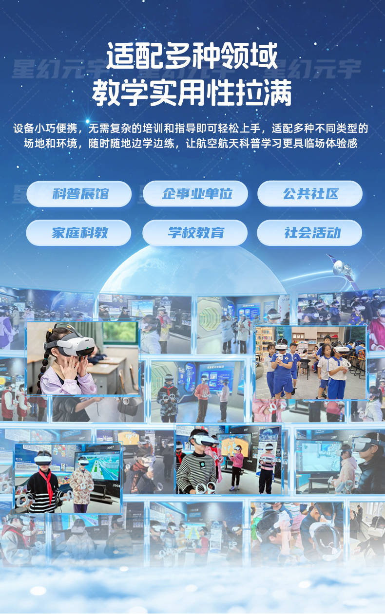 青少年是未来科技创新的主力军,而航空航天教育的普及离不开创新的教学方式。VR航空航天学习机以互动体验为核心,让学生在趣味探索中掌握航天知识、了解科技发展历程,从而激发他们的科学梦想与创新思维。