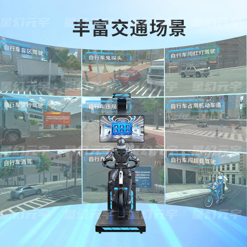 在交通安全教育不断升级的当下,传统的课堂讲解、宣传册阅读,已经难以满足大众对知识获取的多样化需求。为了让更多人能够直观、深刻地认识交通风险,一种集互动、沉浸、体感为一体的交通科普设备——VR动感科普单车,正逐渐走进各类安全教育基地、社会综合实践中心、学校及社区体验馆。它不仅带来新颖的体验方式,更将交通安全知识转化为可感知、可体验的学习过程,让原本枯燥的内容变得生动而深刻。