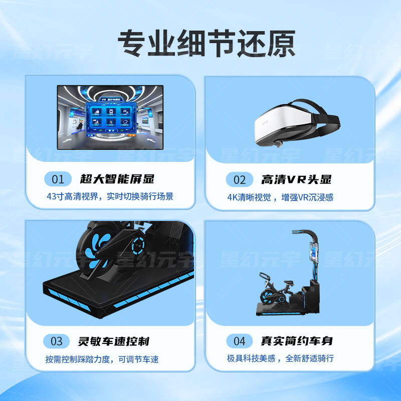设备采用标准单车结构设计,安全稳固性高,体验时不需要真正上路骑行,无任何交通风险。VR头显轻便舒适,操作端界面清晰易理解,即使是初次体验的用户也能快速上手。