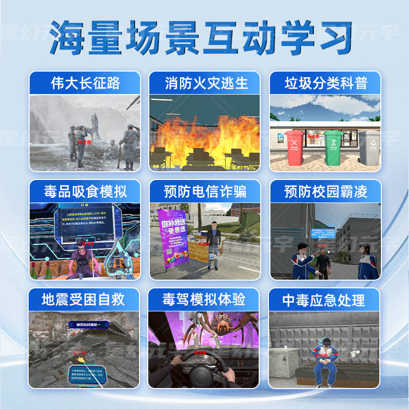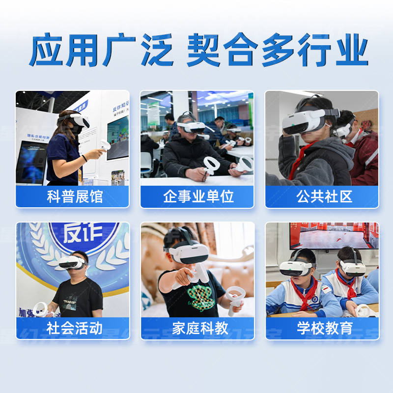 VR科普学习一体机采用高性能头显设备与手柄交互技术,用户可像进入真实世界一样进行观察、探索与操作。无论是灾害逃生演练,还是红色纪念场景复原,都能以立体化、多角度的方式呈现在眼前,让抽象知识变得具体,让难记的内容变得易记。