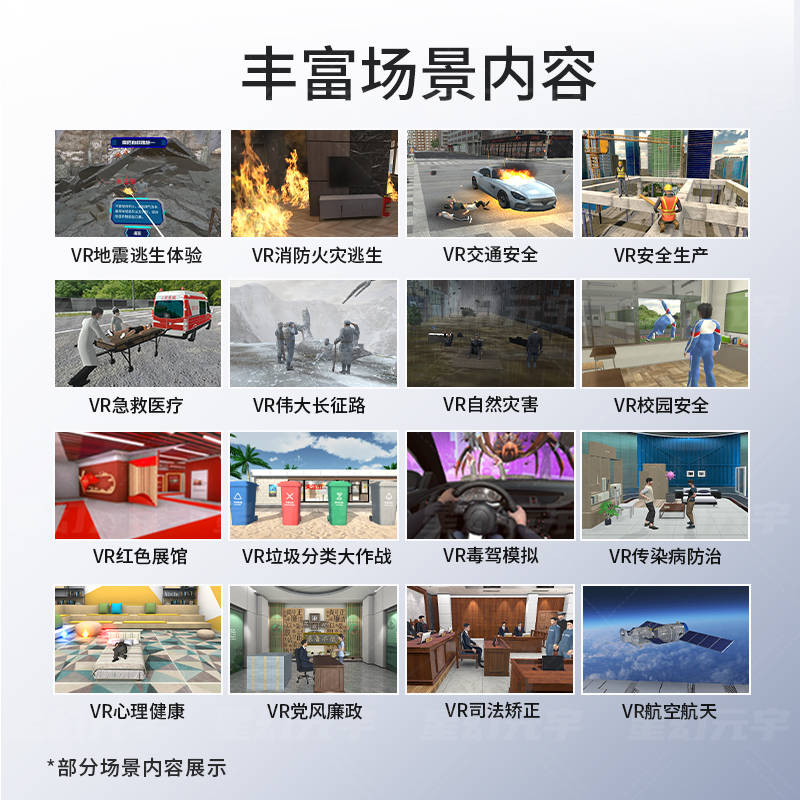VR互动平台不仅是一套硬件设备,更是一个内容承载与展示的平台。通过搭配不同主题的VR软件,可灵活应用于多种科普与展示方向,例如: