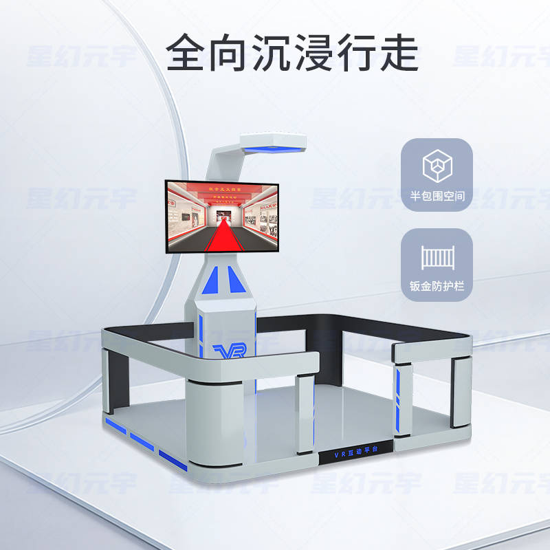 VR互动平台是一款将虚拟现实技术与真实运动体验相结合的创新型硬件设备。用户通过佩戴VR显示设备,并在互动平台上进行行走、转身、操作等自然动作,即可在虚拟场景中完成探索、学习与体验。