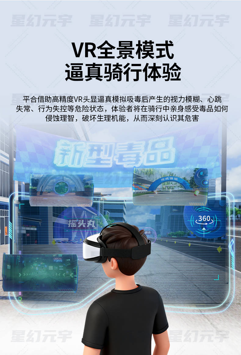 在传统禁毒宣传中,图文展板、视频播放虽然具备一定教育意义,但对青少年和公众的吸引力正在逐渐减弱。随着虚拟现实技术的成熟,一种融合运动体验与沉浸式学习的新型禁毒科普方式正在兴起——VR禁毒骑行。它将骑行运动、VR场景与禁毒教育内容深度结合,让体验者在“边骑边学”的过程中,直观认识毒品危害,提升防毒、拒毒意识。