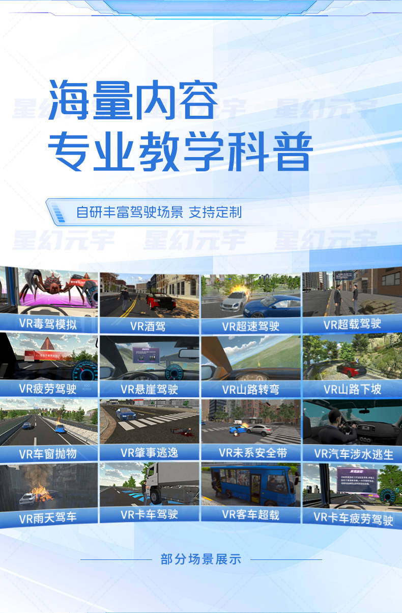 VR科普赛车并非娱乐赛车游戏,而是将交通法规、安全常识巧妙融入体验流程中。不同年龄段可以匹配不同内容模块:
