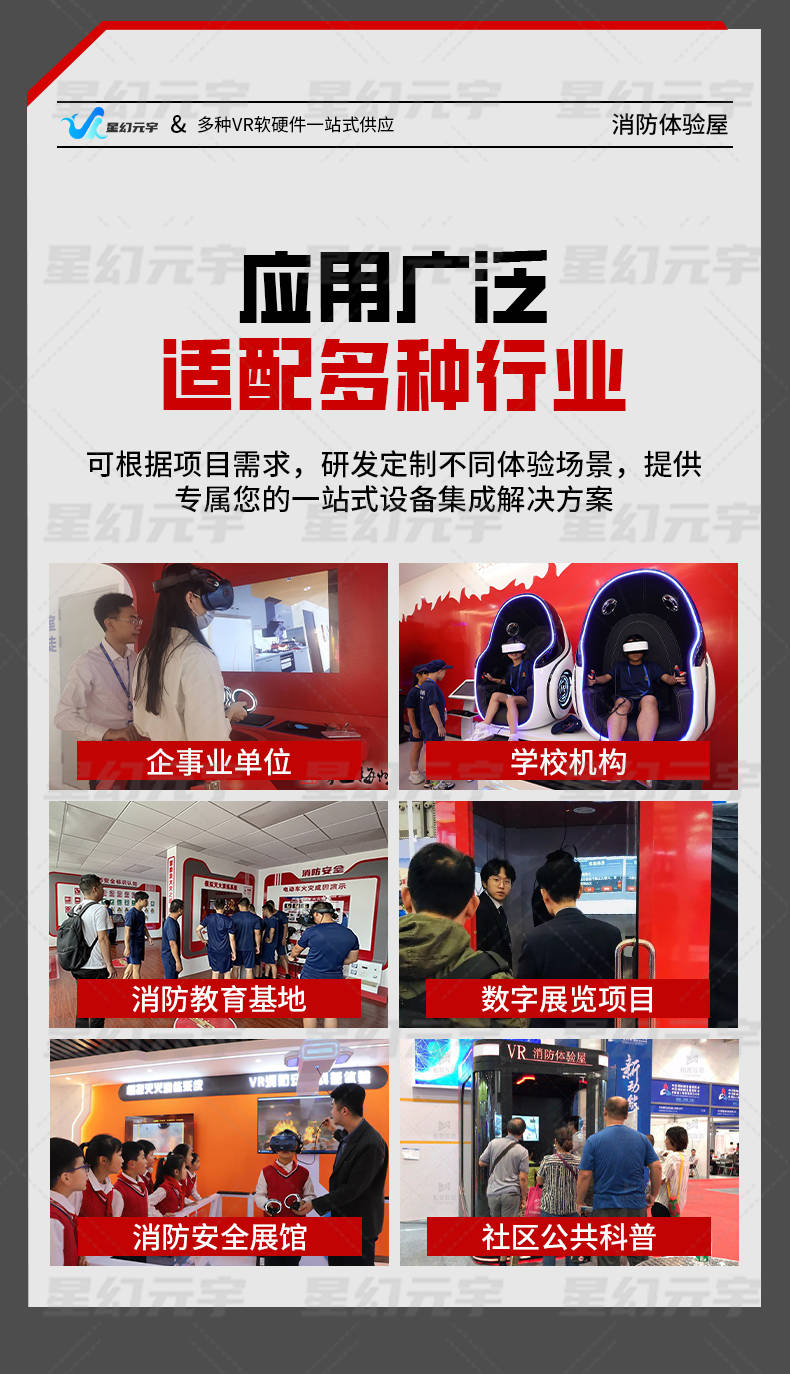 VR消防安全体验屋具有良好的通用性和扩展性,可广泛应用于消防科普馆、应急安全体验中心、学校安全教育基地、社区活动中心、企业培训场所等。