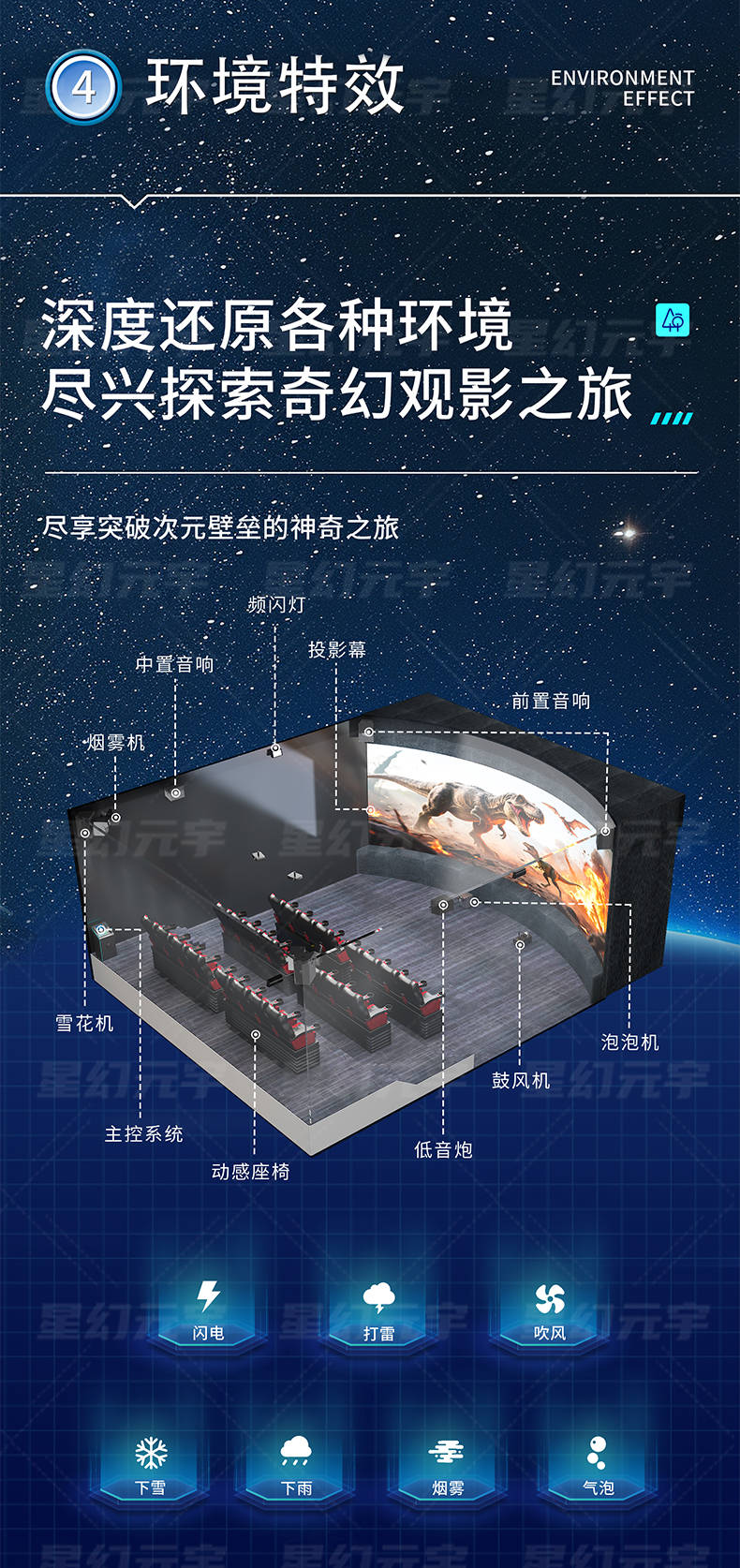 环境特效模块:风、雨、雷、电、气味等多种效果可选