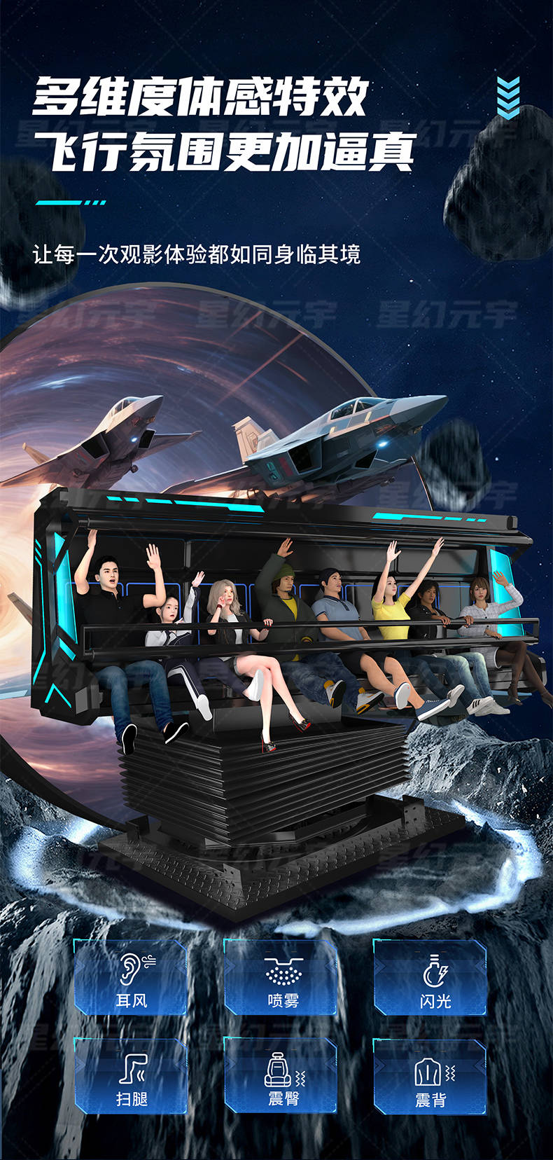 “5D”不仅指立体画面,还包括风感、震动、气流、音效等多种感官反馈,使视觉、听觉、体感高度同步,营造出真实的飞行状态。