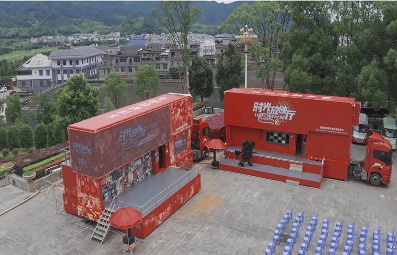 “时光放映厅”巡展车采用增强现实、裸眼3D等创新科技打造沉浸 式快闪体验,通过“时光海报墙”“时光金句林”“时光老片场”“时 光雕刻机"等互动主题,将经典影片转化成为党史学习教育的新 载体,红色记忆传承的新平台,