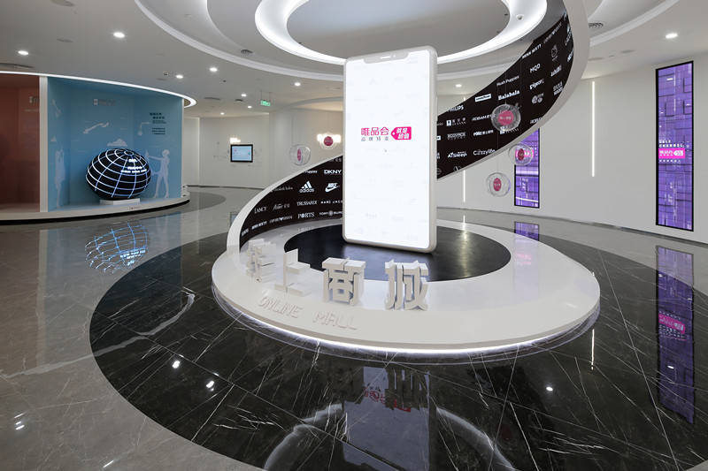 在这座展馆中,充分利用空间结合裸眼3D、智能机械、3D mapping、 AR等数字化技术,通过多样化沉浸式展陈形式,参观者可以切身体验 唯品会对未来数字化购物模式的创新畅想,同时,感受未来数字化购 物模式带来的便捷。并整合图文、声音、动画、视频等多种媒体展示 方式,使唯品会企业形象更生动化呈现,数字展示伴随数字唯品,共 同引领数字时代潮流。