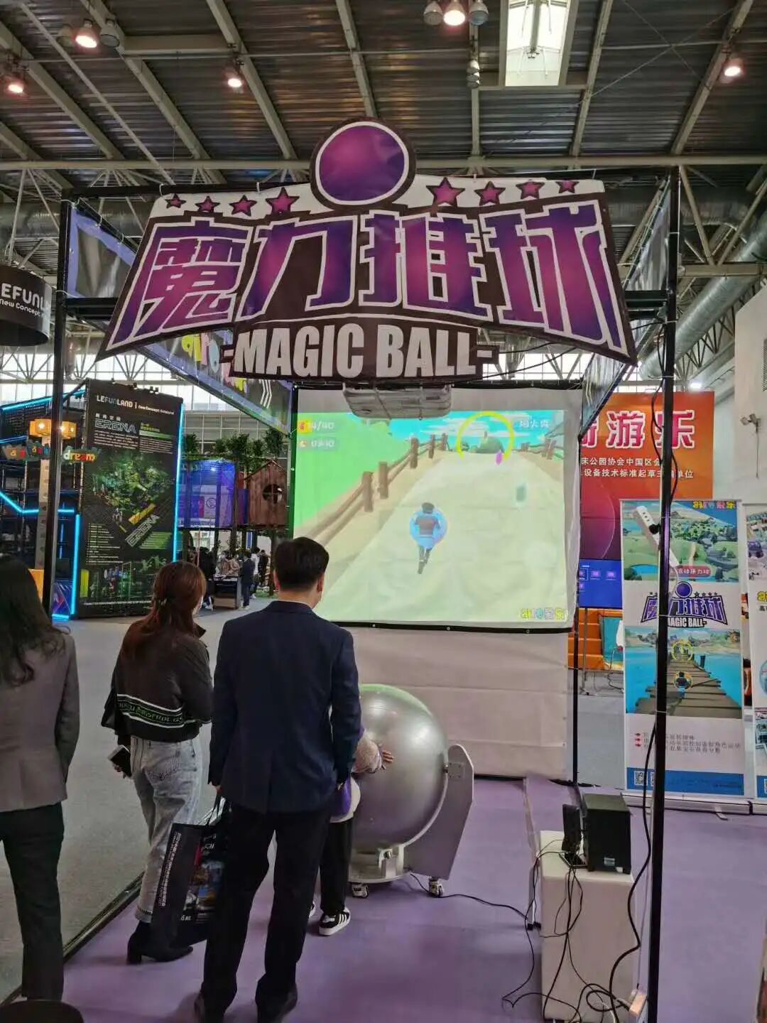 魔力推球是一款从国外复健医疗系统得出灵感设计出的游戏,可以看出瑜伽球也运用在上面,通过转动旋转球体,控制虚拟角色的运动。
