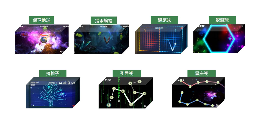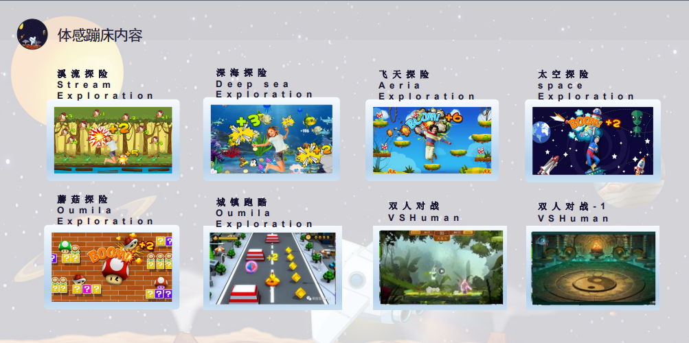 通过不同主题不同玩法的设定,使用户在游戏过程中充分体验到体感蹦床的乐趣。